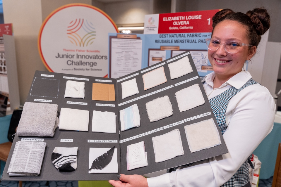 Elizabeth (Ellie Lou) Olvera won the $10,000 Robert Wood Johnson Foundation Award for Health Advancement for her project, which identified an eco-friendly fabric suitable for creating affordable and reusable menstrual pads.